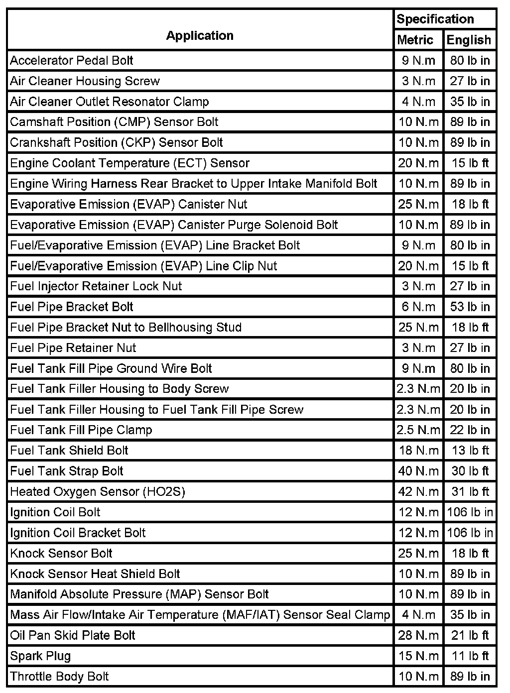Fastener Tightening Specifications