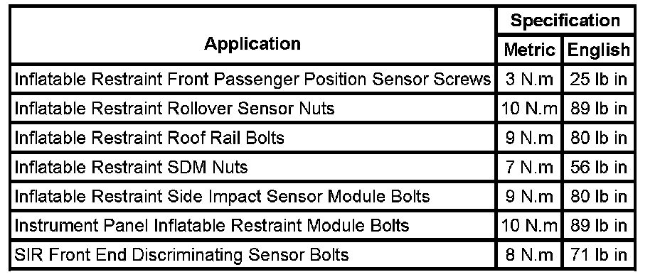 Air Bag Systems: Specifications