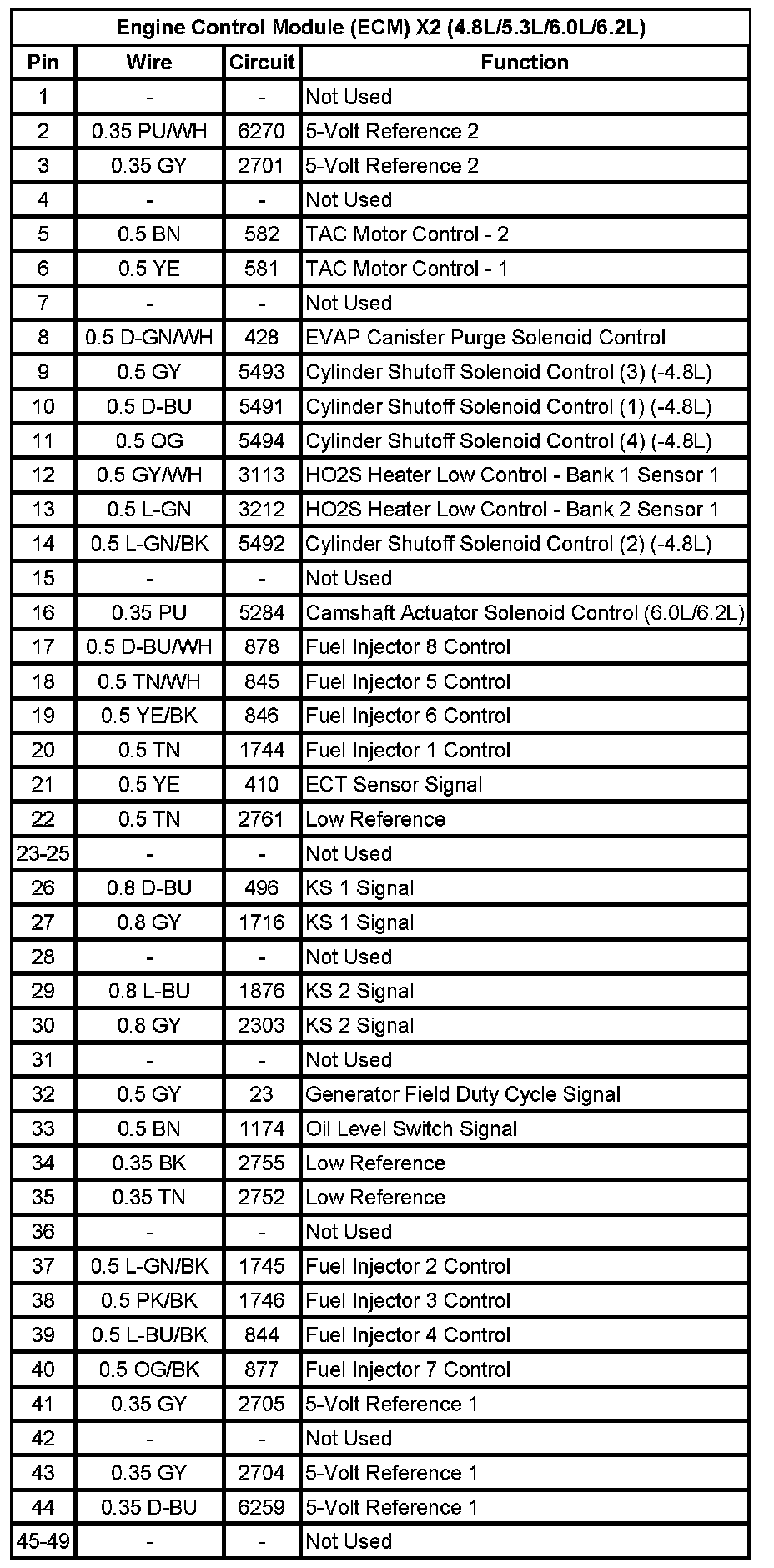 Engine Control Module (ECM) X2 (4.8L/5.3L/6.0L/6.2L) (Pin 1 To 49):