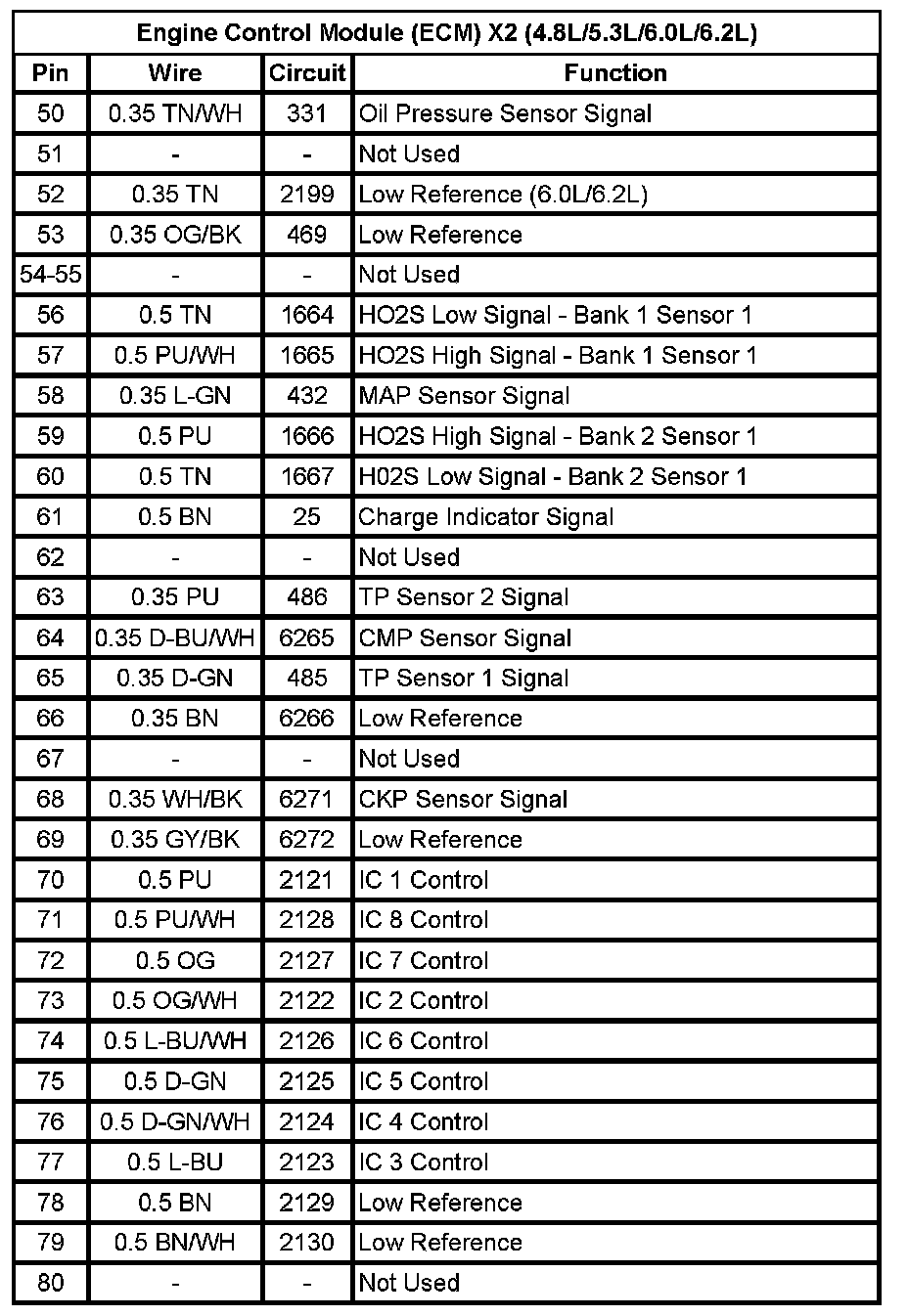 Engine Control Module (ECM) X2 (4.8L/5.3L/6.0L/6.2L) (Pin 50 To 80):