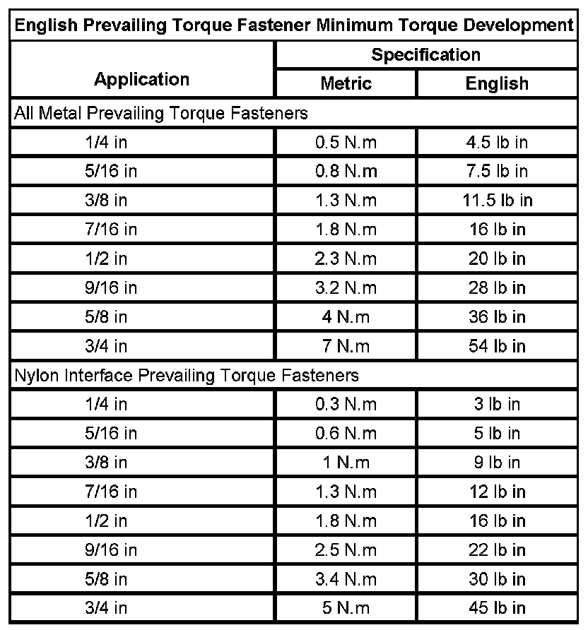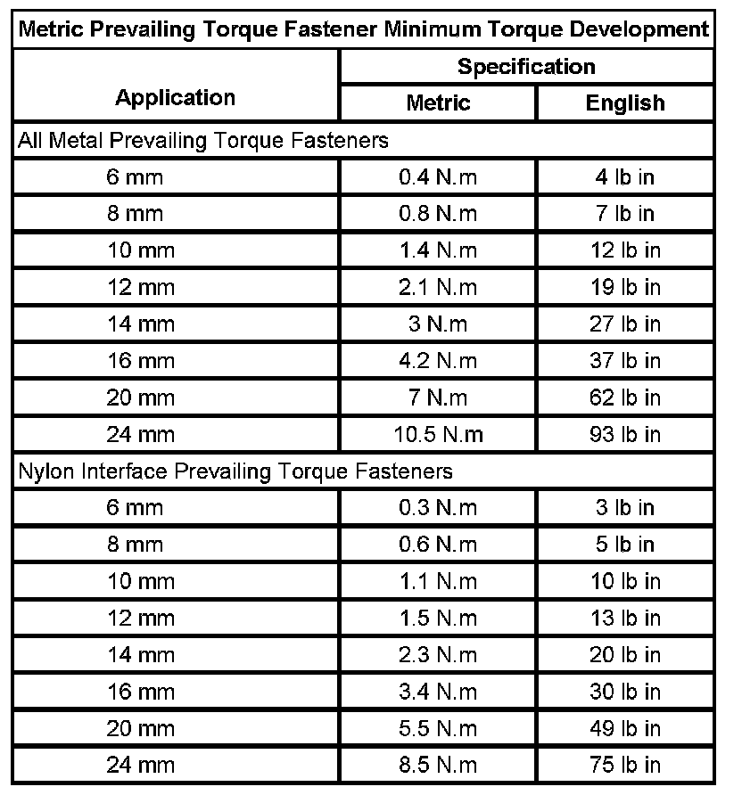 Prevailing Torque Fasteners