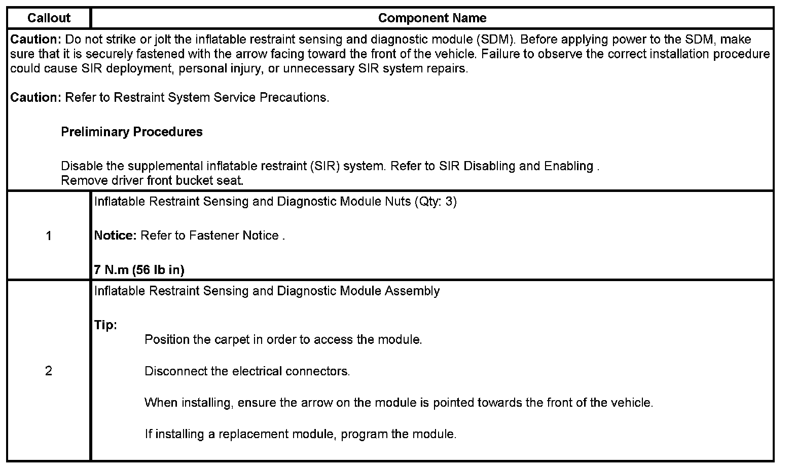 Inflatable Restraint Sensing and Diagnostic Module Replacement