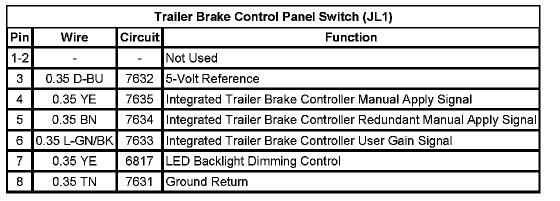 Trailer Brake Control Panel Switch (JL1)