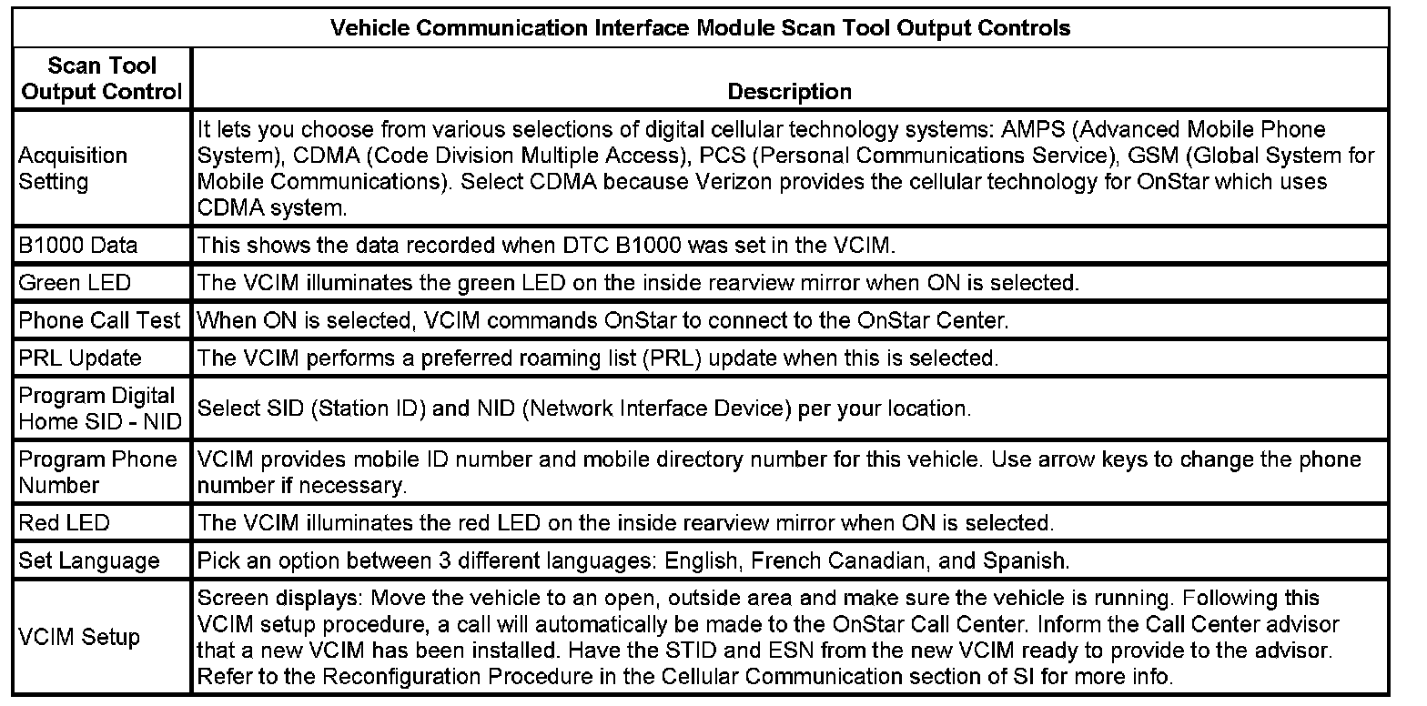 Communication Interface Module Scan Tool Information