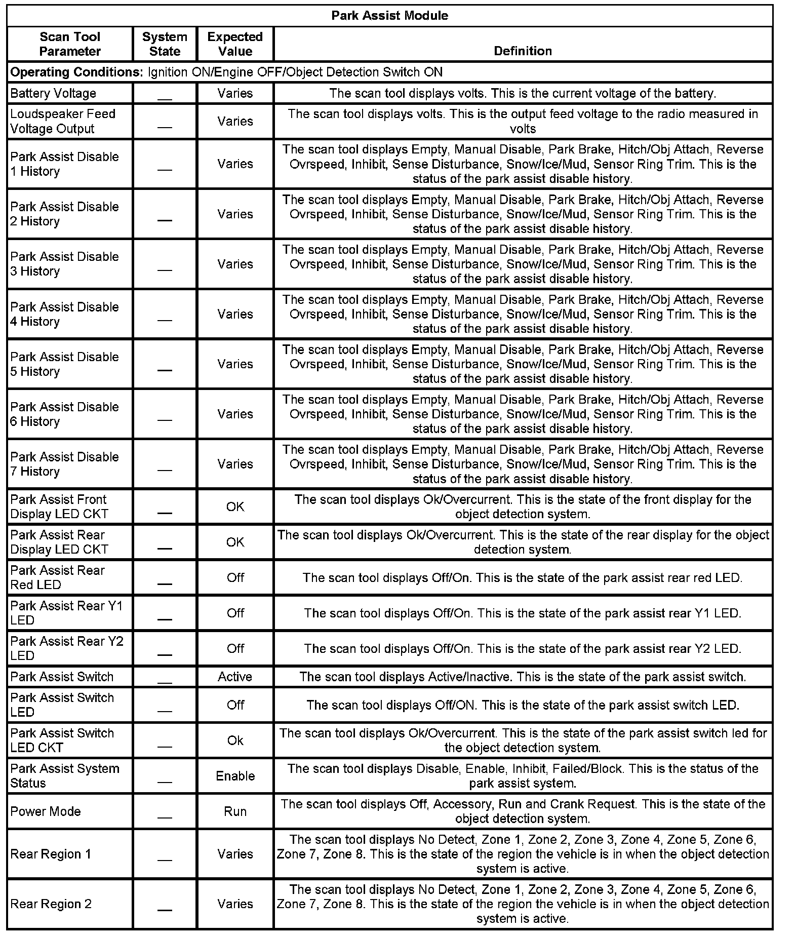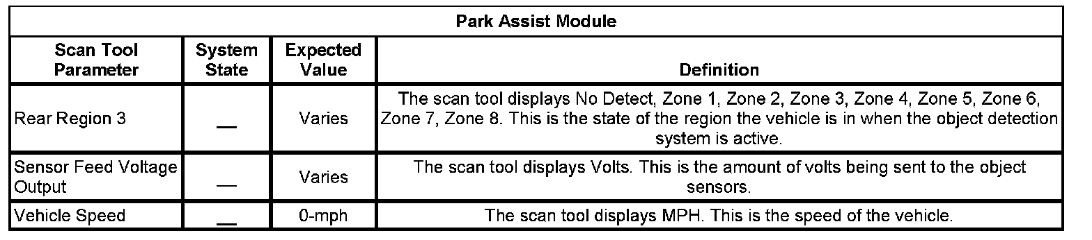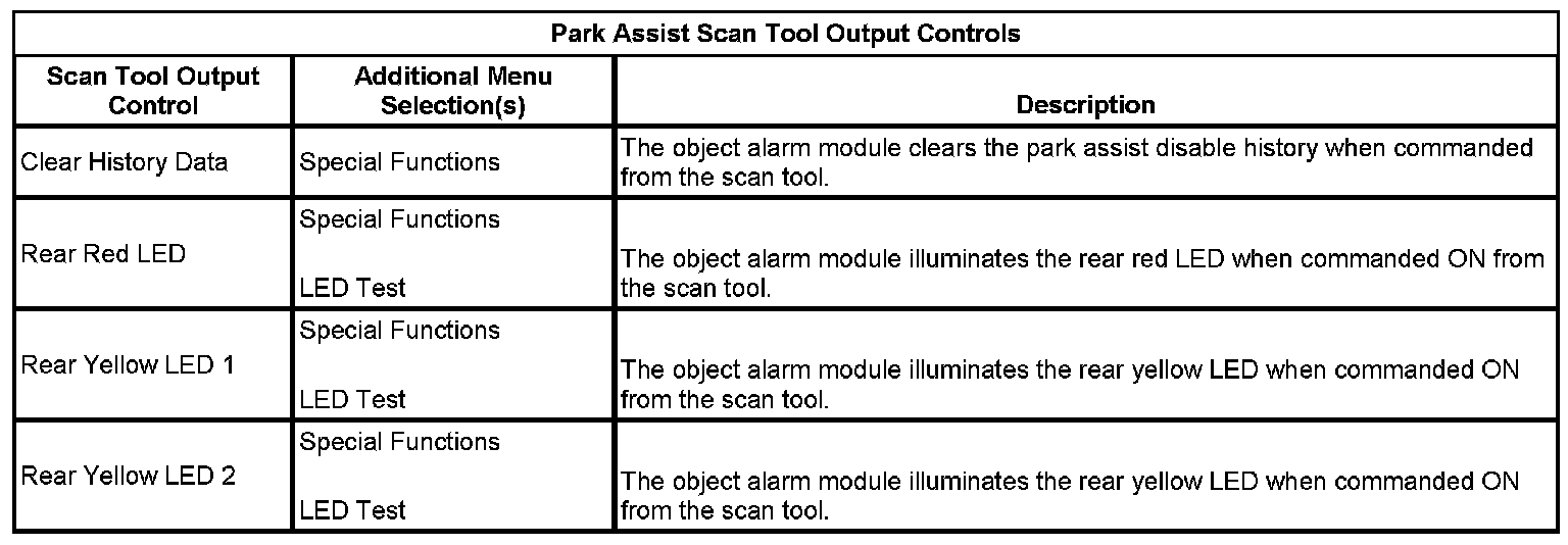 Rear Object Alarm Module Scan Tool Information
