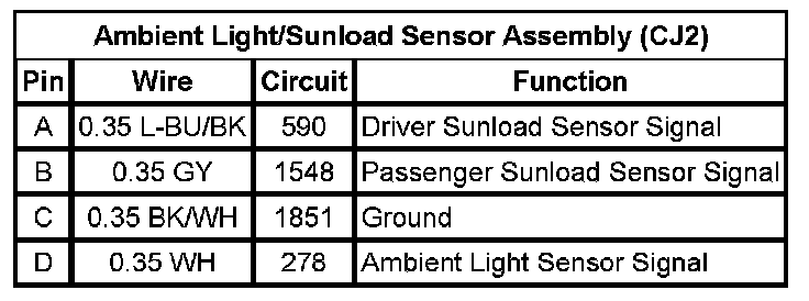 Ambient Light/Sunload Sensor Assembly (CJ2)