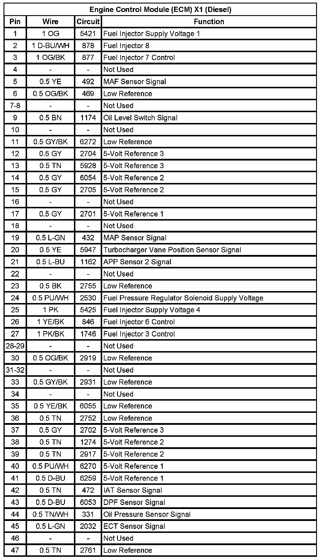 Engine Control Module (ECM) X1 (Diesel) (Pin 1 To 47):
