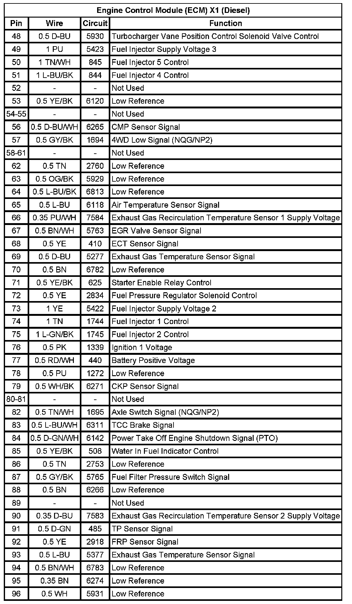 Engine Control Module (ECM) X1 (Diesel) (Pin 48 To 96):