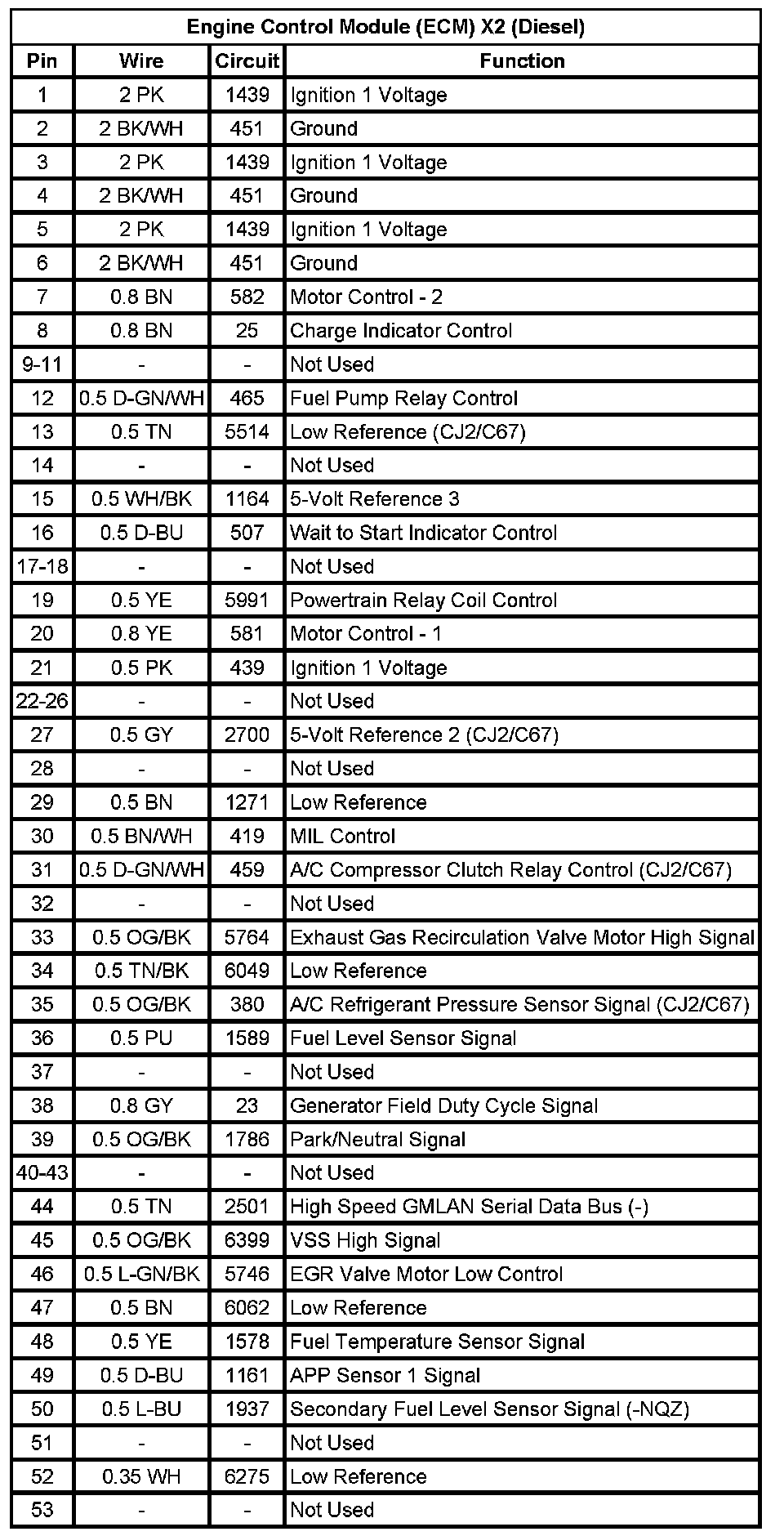 Engine Control Module (ECM) X2 (Diesel) (Pin 1 To 53):
