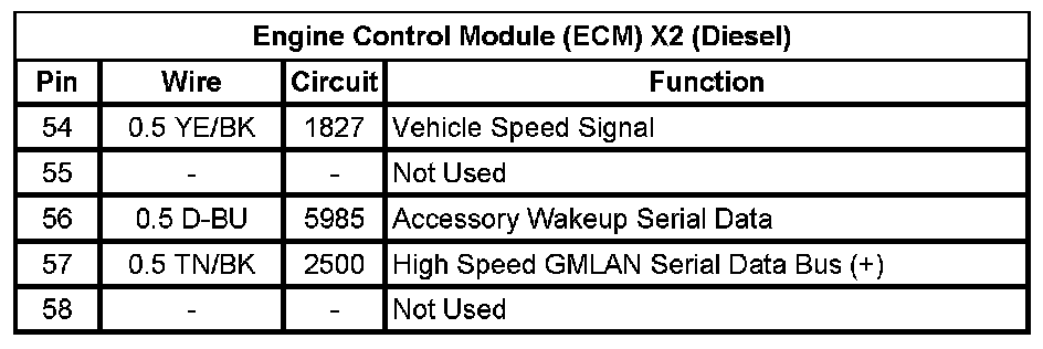 Engine Control Module (ECM) X2 (Diesel) (Pin 54 To 58):