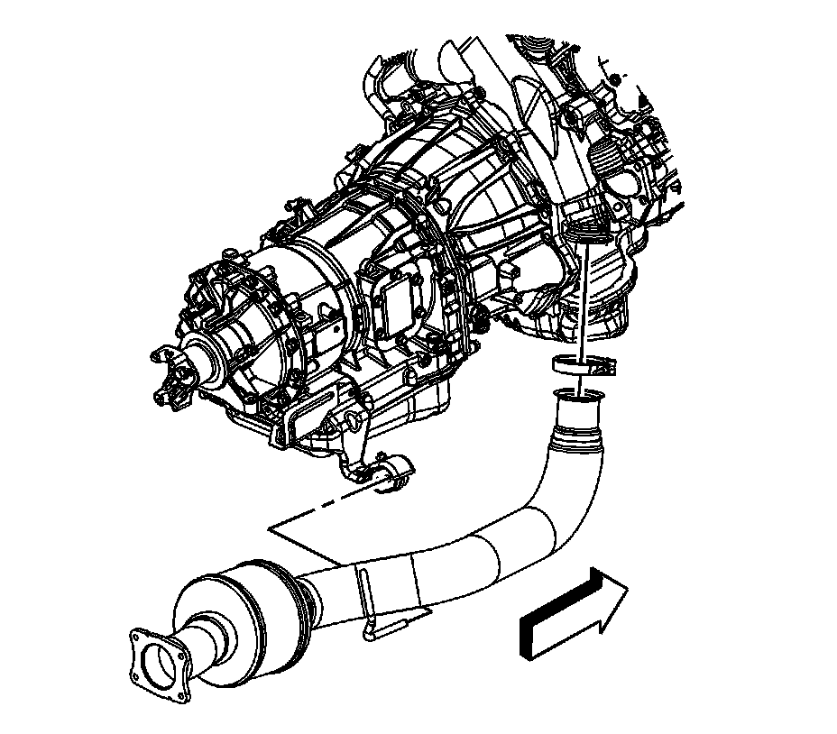 3. Slide the down turbocharger exhaust pipe to catalytic converter clamp.