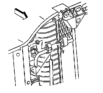 3. Remove radiator support bolts (1). Access the bolts from the rear of the upper radiator support. Refer to Radiator Support Replacement.