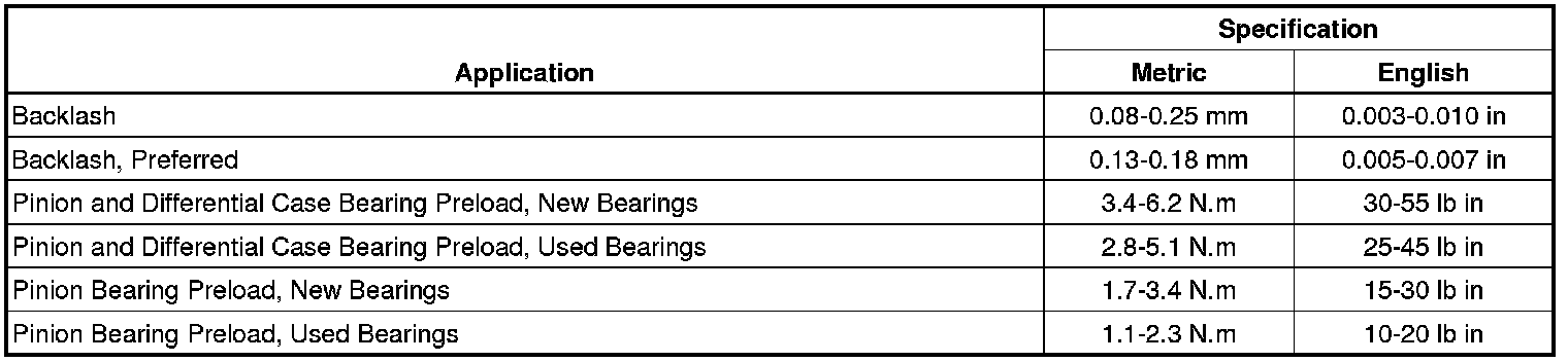 Axle Preload and Backlash Specifications