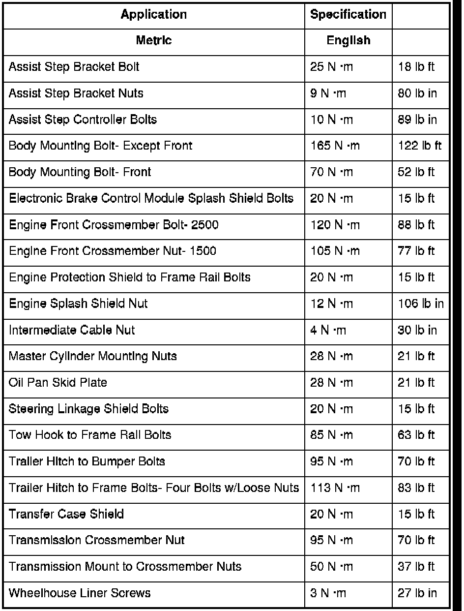 Fastener Tightening Specifications