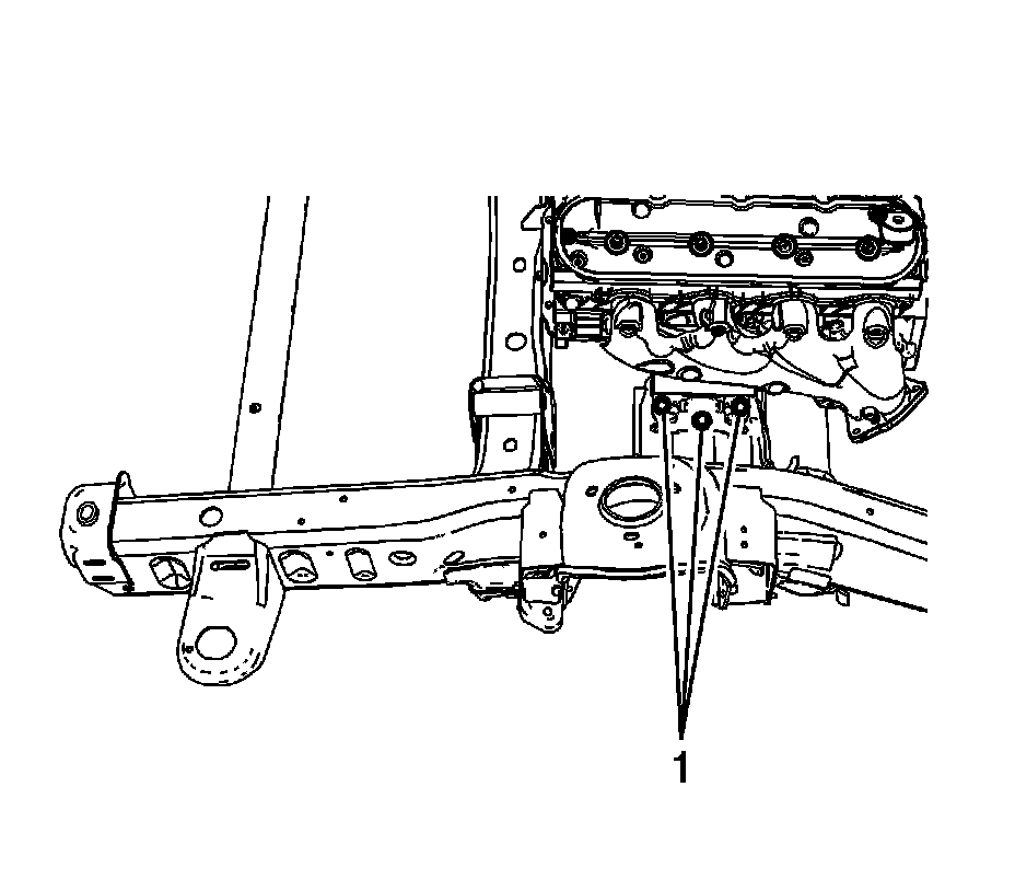 9. For 1500 series vehicles with a 5.3L, 6.0L, or 6.2L engine, install the left and right engine mount to frame bolts (1).