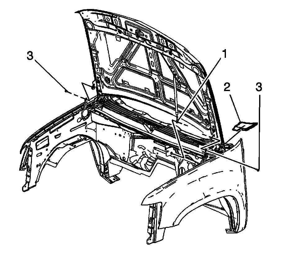 14. Remove the hood latch. Refer to Hood Primary and Secondary Latch Replacement .