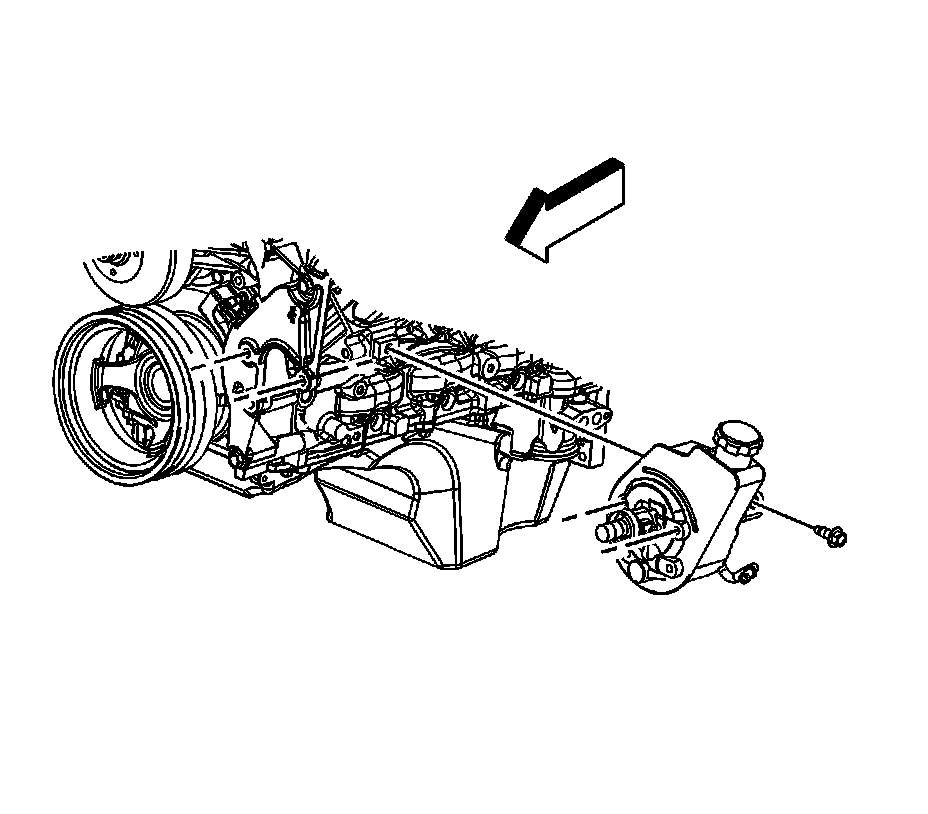 47. Remove the rear power steering pump-to-engine block bolt (1500 series shown, 2500 series similar).
