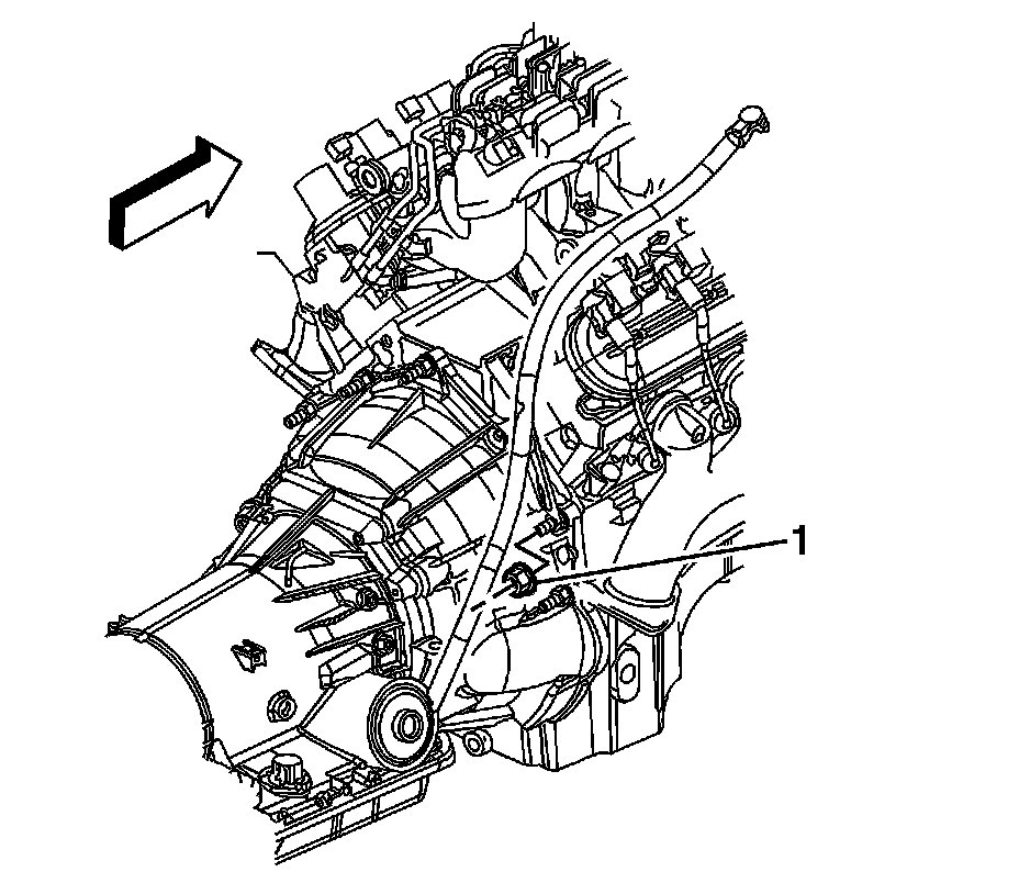 25. Disconnect the engine harness electrical connector (1) from the oil pressure sensor.