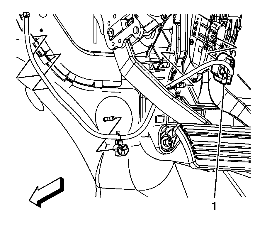 2. Push down the small tab and disconnect the accelerator pedal position (APP) sensor electrical connector (1).