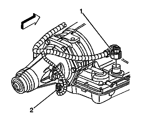 2. Disconnect the vehicle speed sensor (VSS) electrical connector (2).