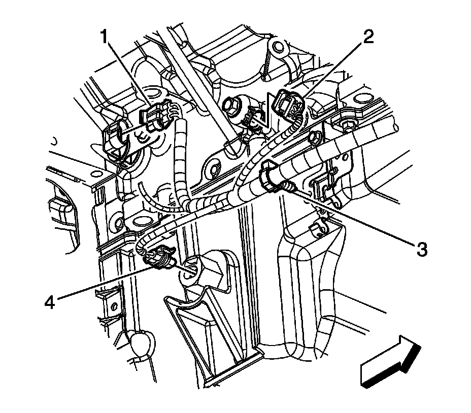 7. Disconnect the engine wiring harness electrical connector (4) from the oil level sensor.