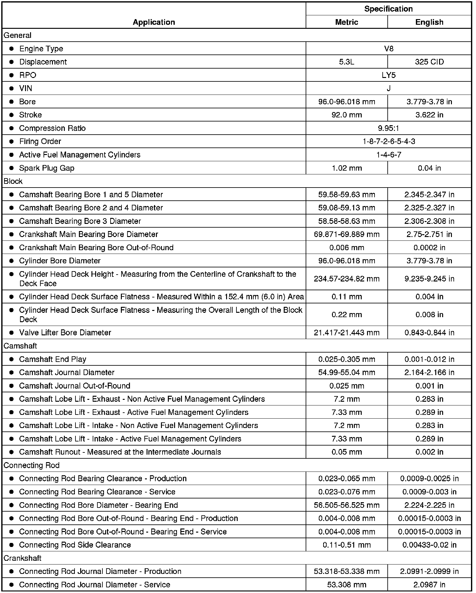 Engine Mechanical Specifications (RPO LY5 VIN J)