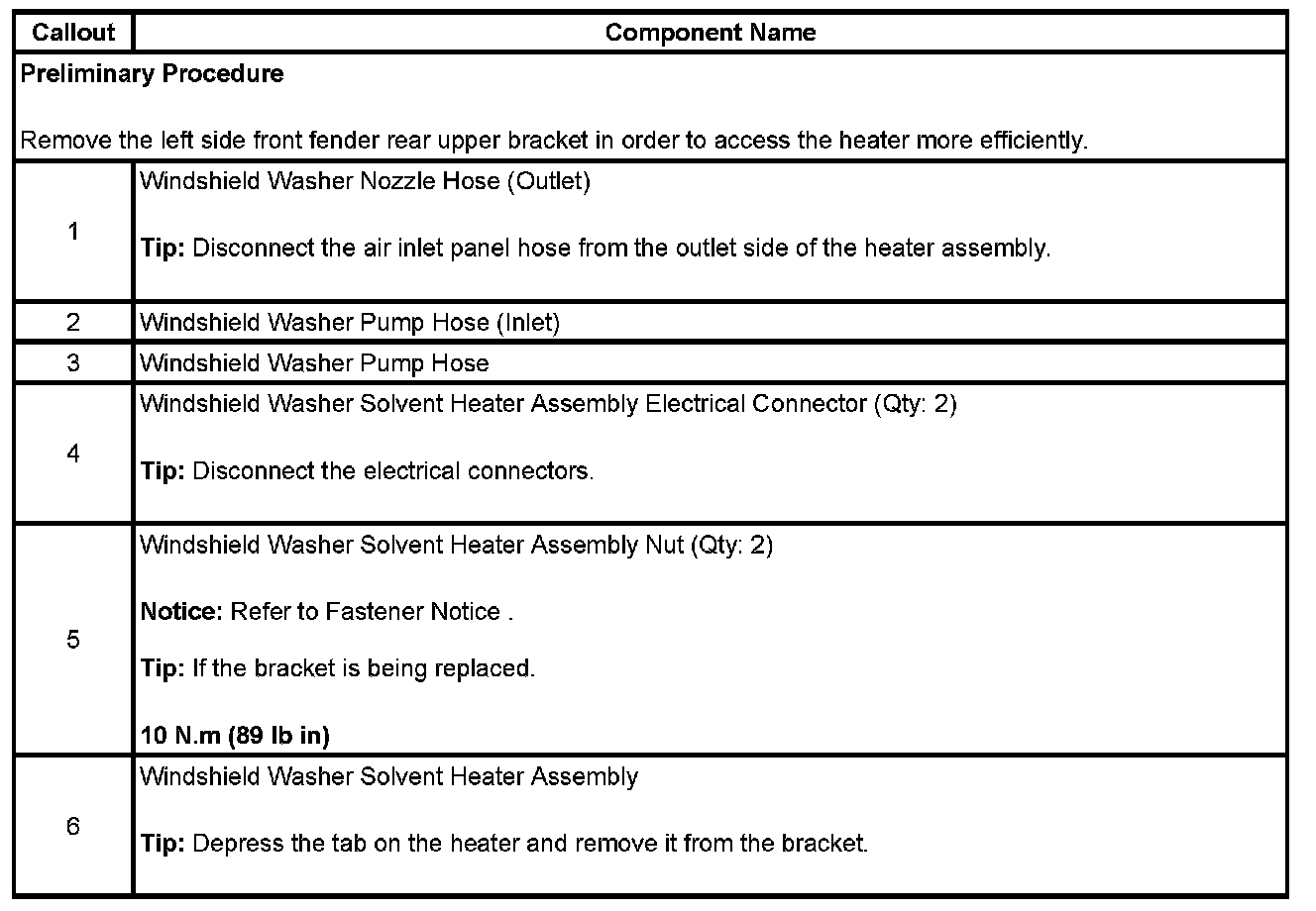 Washer Fluid Heater: Service and Repair