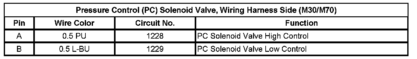 Pressure Control (PC) Solenoid Valve, Wiring Harness Side (M30/M70)