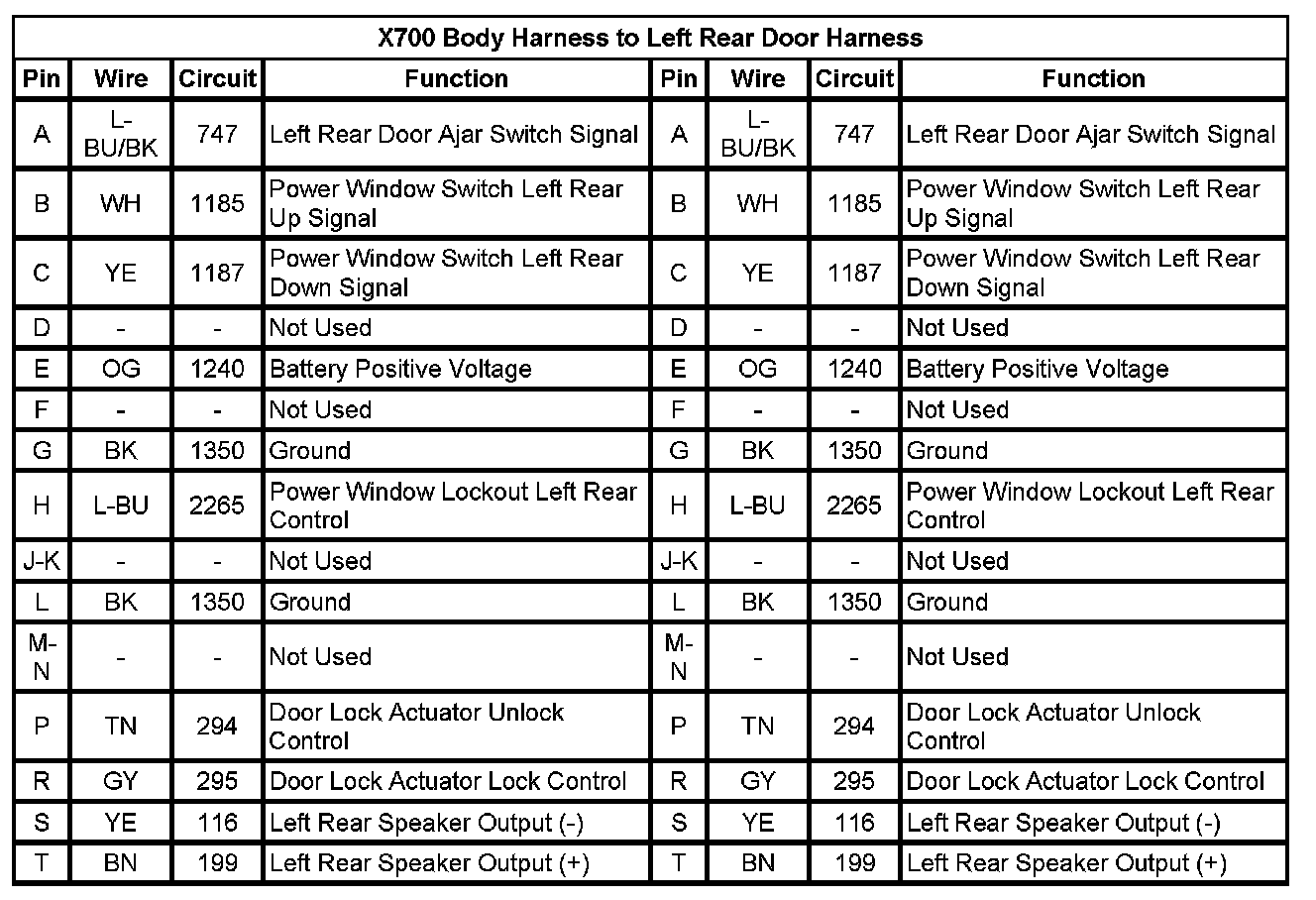 X700 Body Harness to Left Rear Door Harness