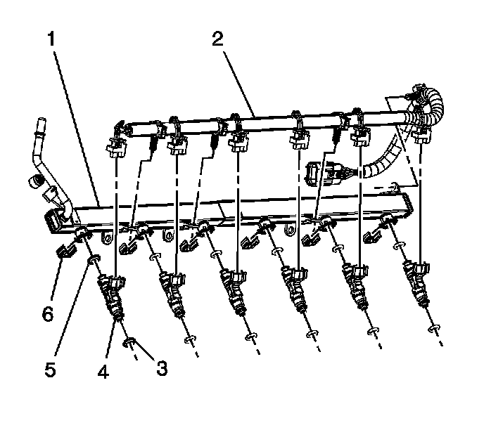 6. Install the fuel rail assembly (1).