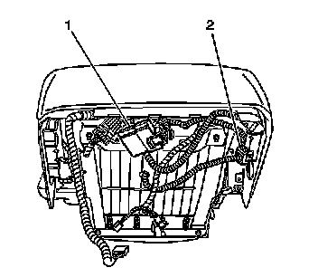 3. Install the pressure sensor (2) to the bottom of the passenger seat cushion frame.