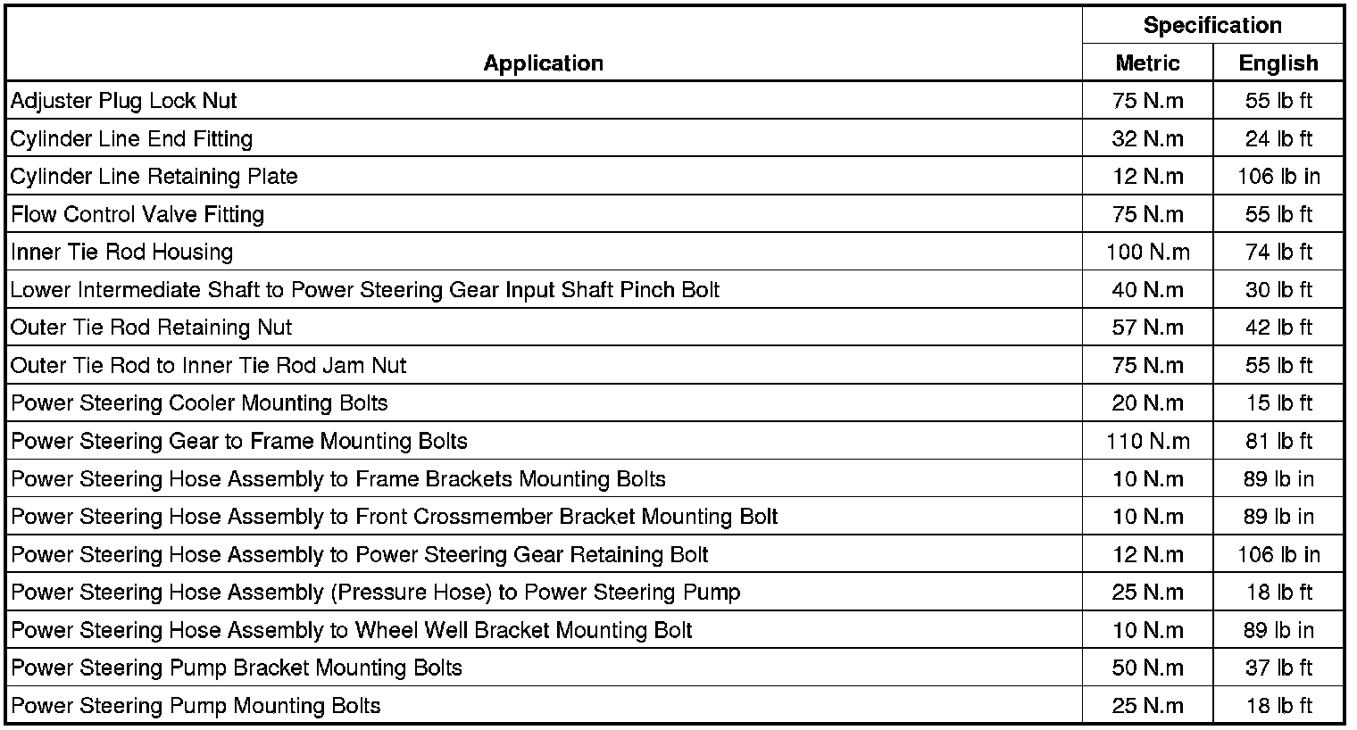 Fastener Tightening Specifications