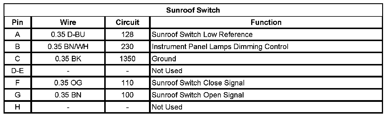 Sunroof / Moonroof Switch