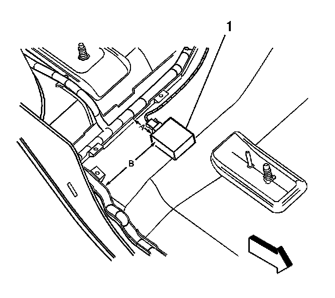 3. The mounting location for the sensor is on the floor panel, 55 mm (2 in) (A) forward of the electrical harness channel, 126 mm (5 in) (B) inboard from the electrical harness channel. Attach the sensor to the floor panel.