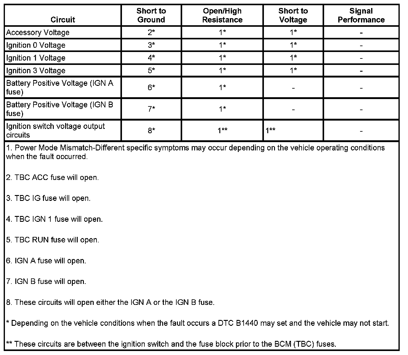 ^ If the test lamp does not illuminate, test the B+ circuit for an open/high resistance or a short to ground, and test the ignition switch ignition voltage output circuits for a short to ground.