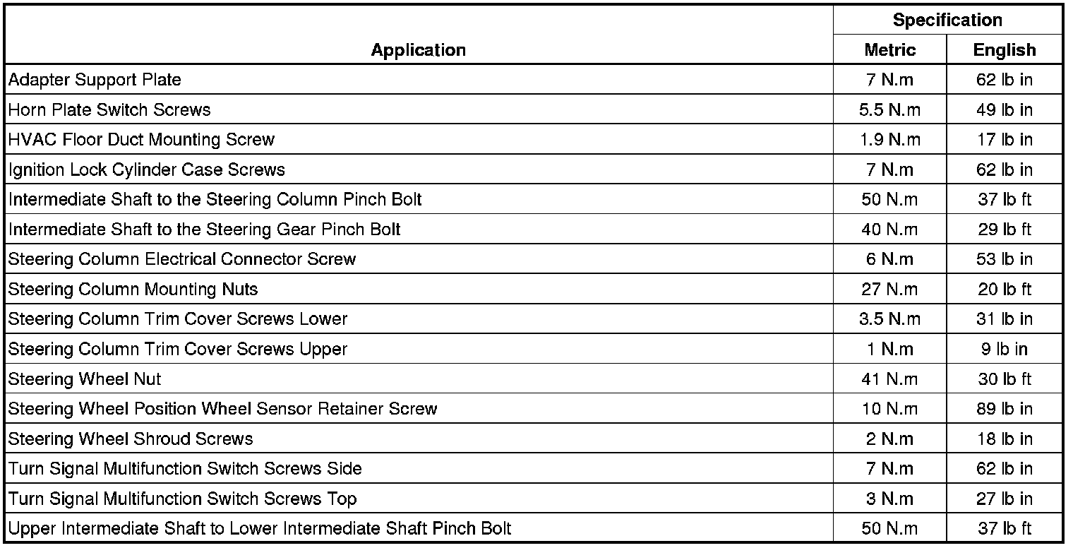 Steering Column: Specifications