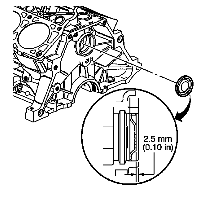 11. Install the front oil gallery plug (107) so that it is 1.5 mm (0.06 in) below flush of the engine block.