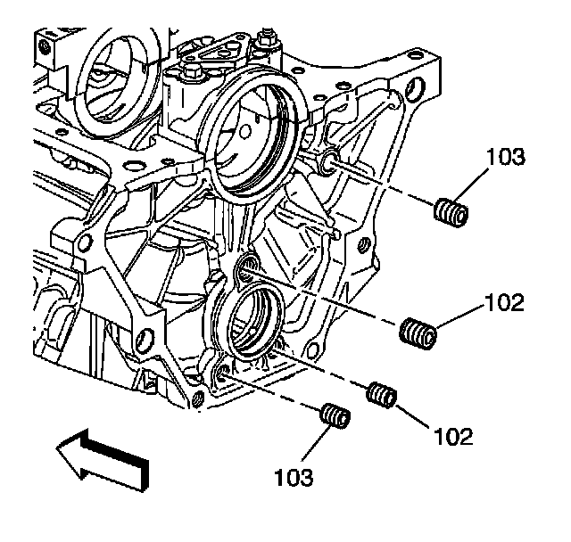 10. Apply sealer GM P/N 12377901 (Canadian P/N 10953504), or equivalent to the front oil gallery plug (107).