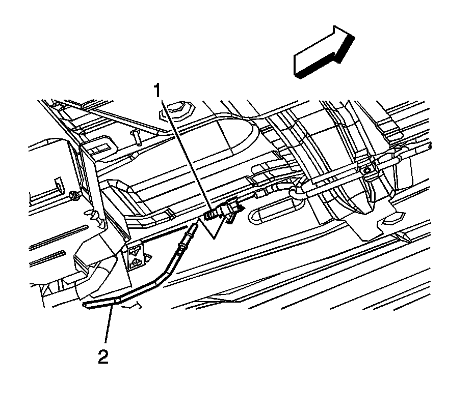 2. Disconnect the fuel feed (1) and evaporative emission (EVAP) (2) pipes from the fuel tank. Refer to Plastic Collar Quick Connect Fitting Service (Plastic Collar Quick Connect Fitting Service).