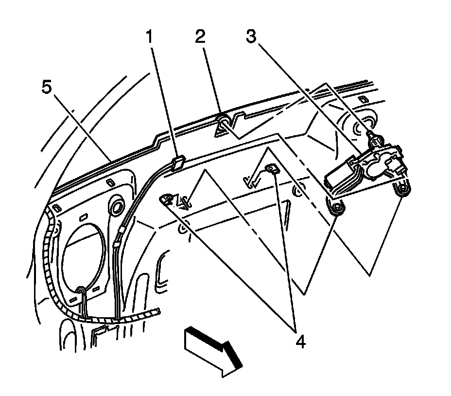 1. Remove the rear wiper arm (5). Refer to Rear Window Wiper Arm Replacement (Rear Window Wiper Arm Replacement).