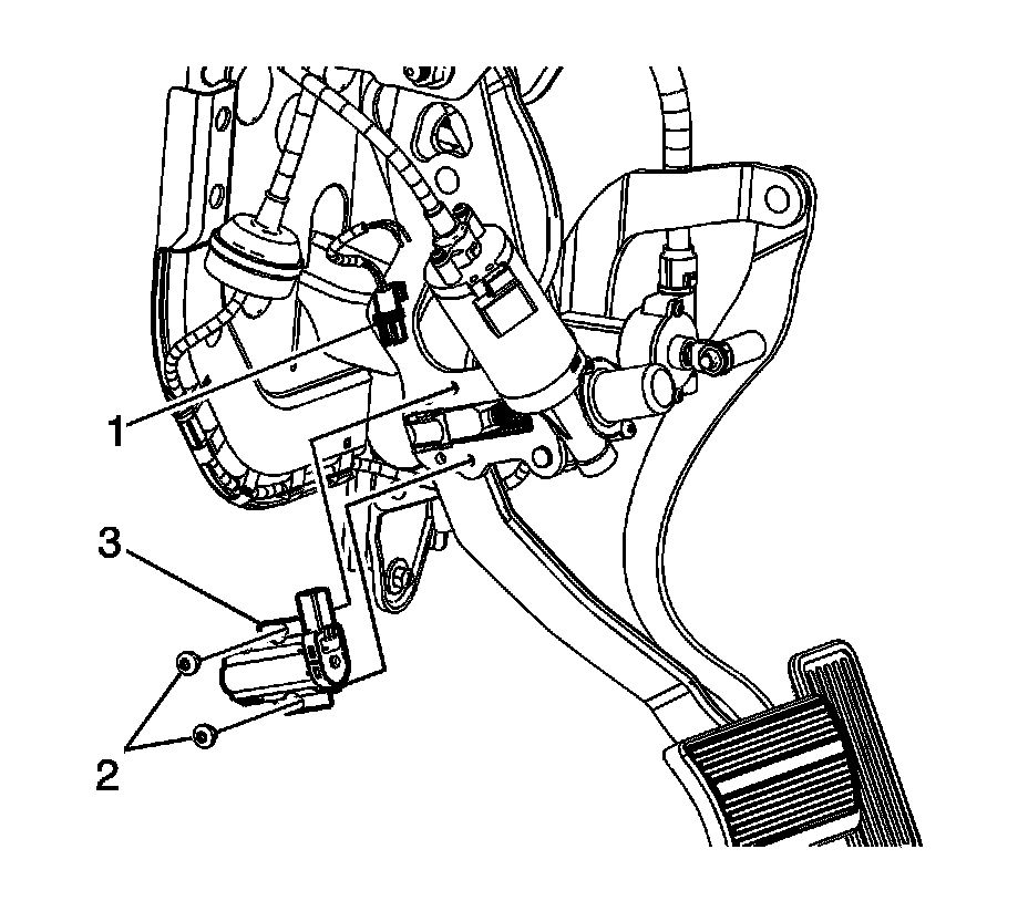 1. Install the brake pedal position sensor (3) to the vehicle.