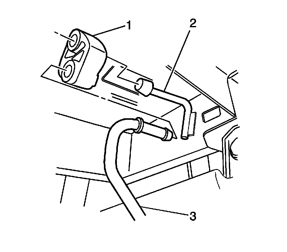 5. Pry the exhaust hangers (1) free from the exhaust pipe hanger rods (3).