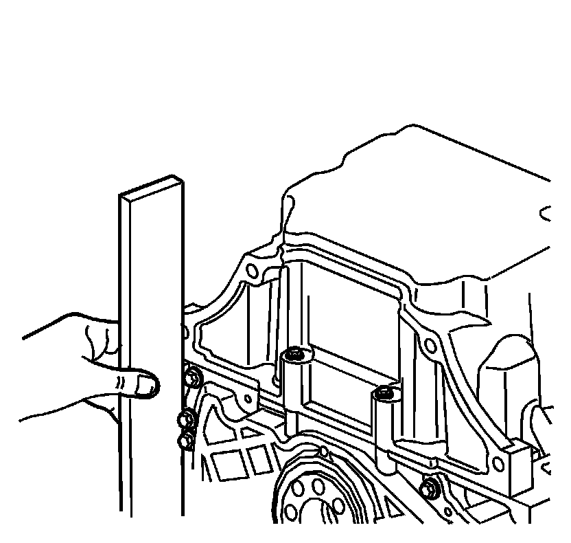 Use a straight edge at the rear of the block and oil pan for proper alignment.