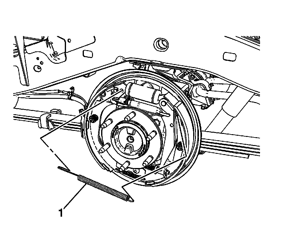 2. Remove the brake shoe adjuster spring (1).