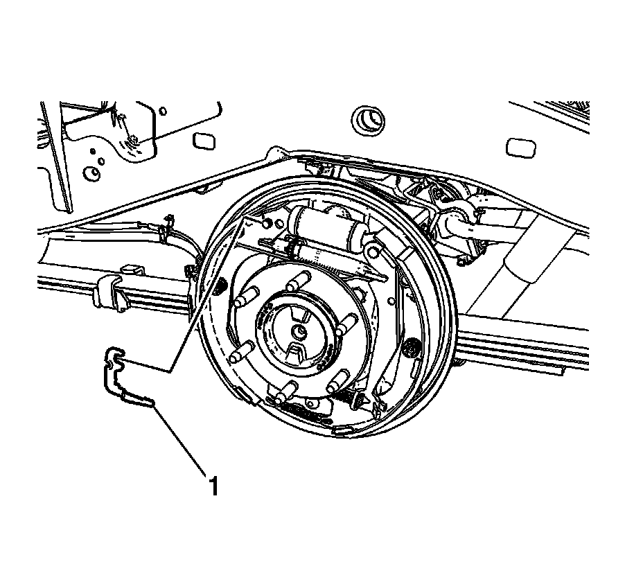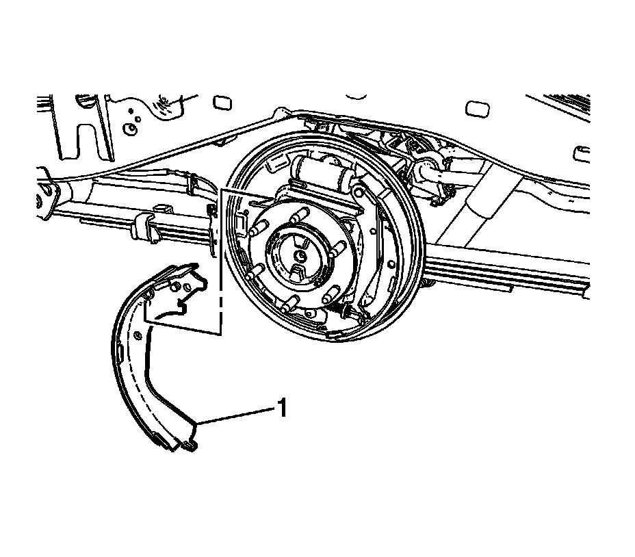 6. Rotate the forward brake shoe (1) toward the rear axle flange.