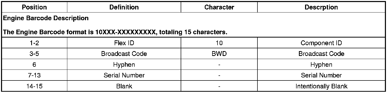 Engine Barcode Description