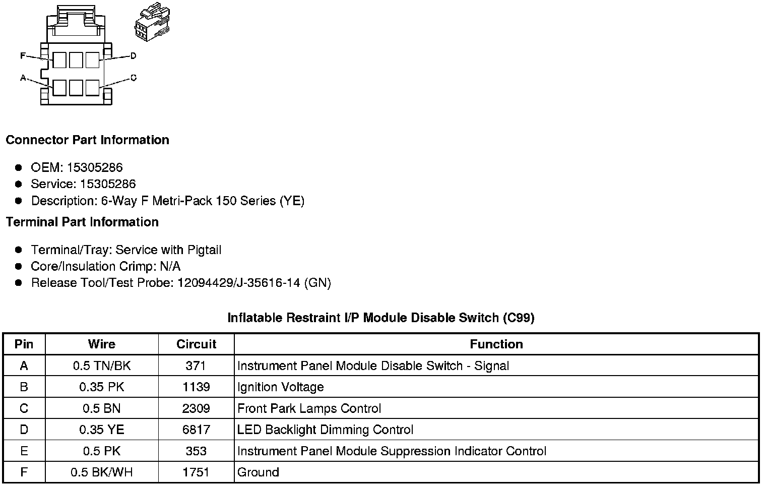 Inflatable Restraint I/P Module Disable Switch (C99)
