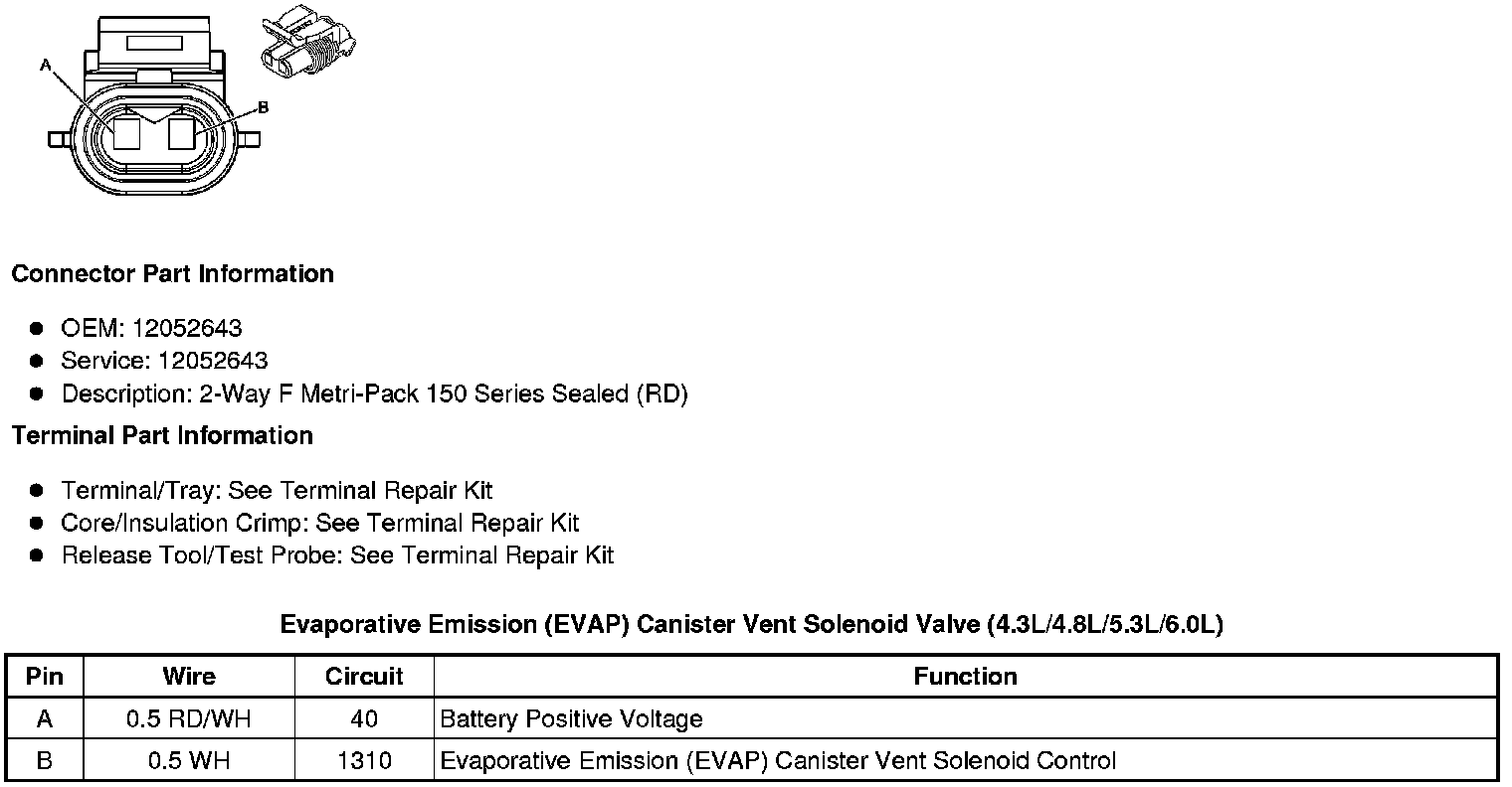 Evaporative Emission (EVAP) Canister Vent Solenoid Valve (4.3L/4.8L/5.3L/6.0L)