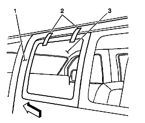 Note: The bodyside glass must be installed to the bodyside opening within 5 minutes after the urethane adhesive is dispensed.