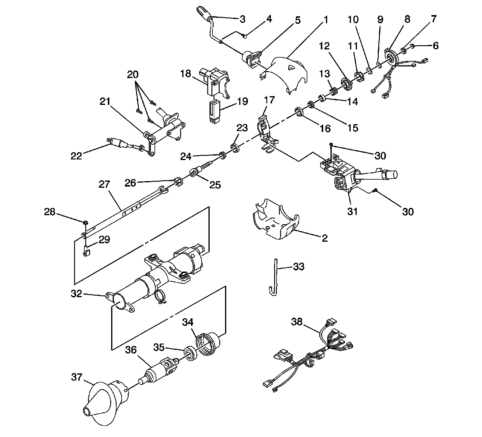 Steering Column Disassembled View (Standard Column)